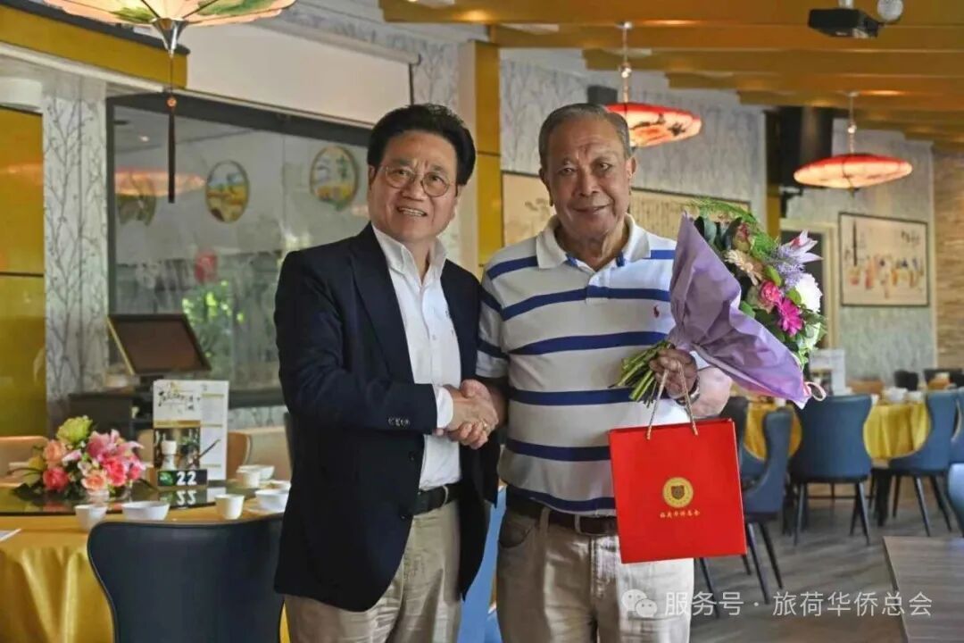 在初夏微风轻拂的午后,我们一行人怀着无比崇敬与感恩的心情,专程前往乌特勒支花城酒楼,拜访荷兰华人社会的杰出代表、旅荷华侨总会荣誉会长——胡克敏先生。这不仅是一次亲切的慰问,更是一场穿越时光的精神对话。胡老作为旅荷华人群体的早期代表之一,几十年来为荷兰华人社会的团结与发展倾注了无数心血,是一位真正意义上的“侨界长者”。他用行动诠释了“无私奉献、薪火相传”的侨团精神,成为我们这一代华人学习的榜样。